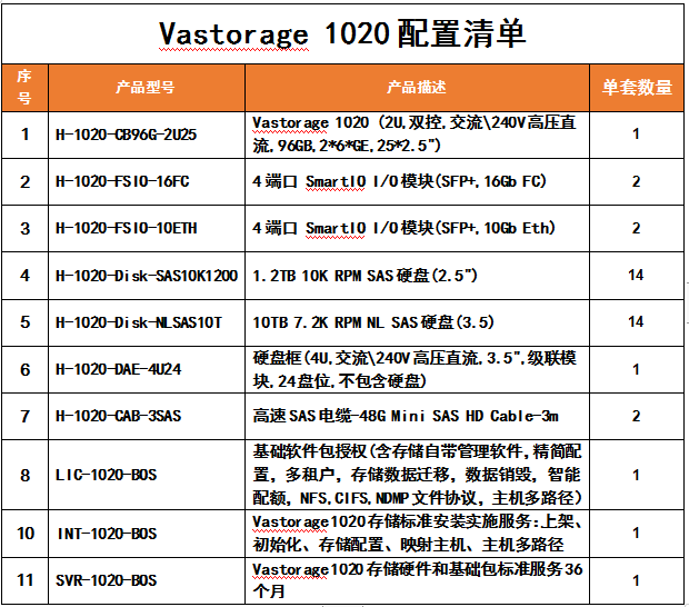 海量数据Vastorage 1020集中式存储