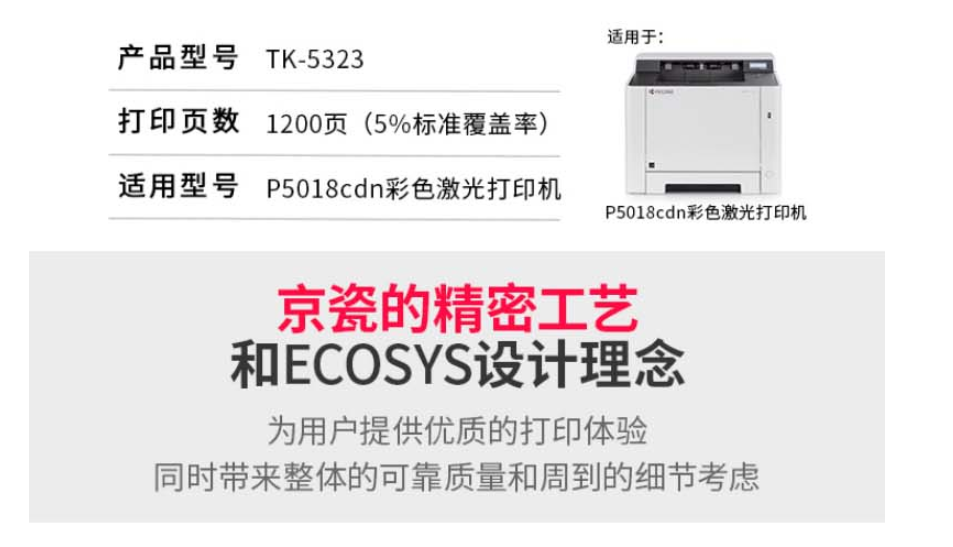京瓷(KYOCERA)TK-5323Y 黄色墨粉/墨盒 适用京瓷P5018cdn彩色激光打印机