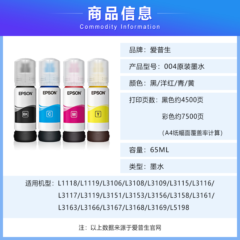 爱普生 004 墨水套装 黑色/彩色 单位:盒