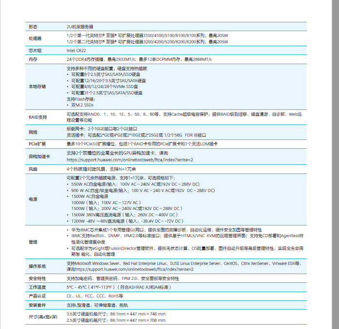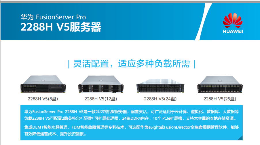 华为2288H V5:8*2.5英寸硬盘机箱,板载2*GE+2*10GE光口,1颗英特尔至强金牌5220R(2.2GHz/24-Core)处理器,512G(16*32GB)DDR4 RDIMM内存, RAID0/1/5,8块1200GB-SAS 12Gb/s-10K rpm 硬盘,2*550W 交流电源;导轨;三年保修服务