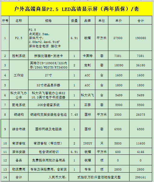 户外高端商显P2.5 LED高清显示屏(两年质保)/套
