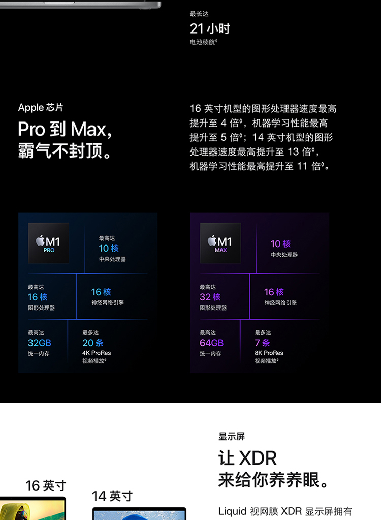 Apple MacBook Pro 14英寸笔记本 M1 Pro (10核中央处理器、16核图形处理器和16核神经网络引擎/32GB+1TB 深空灰色)