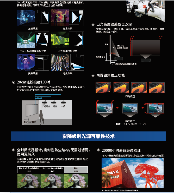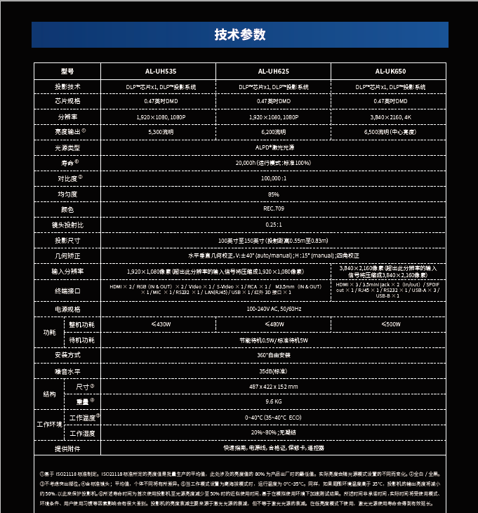 光峰 工程投影仪AL-HU535D/LP显示技术/分辨率:1920×1080/亮度:5300ANSI流明(含专业安装吊架/音箱扩声/安装调试)