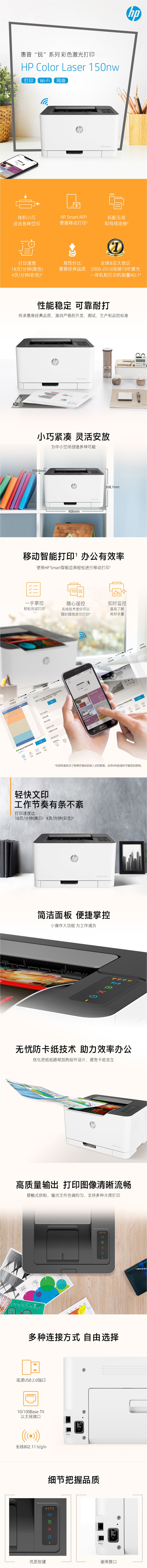 惠普(HP)COLOR LASER 150NW彩色激光打印机(单位:台)