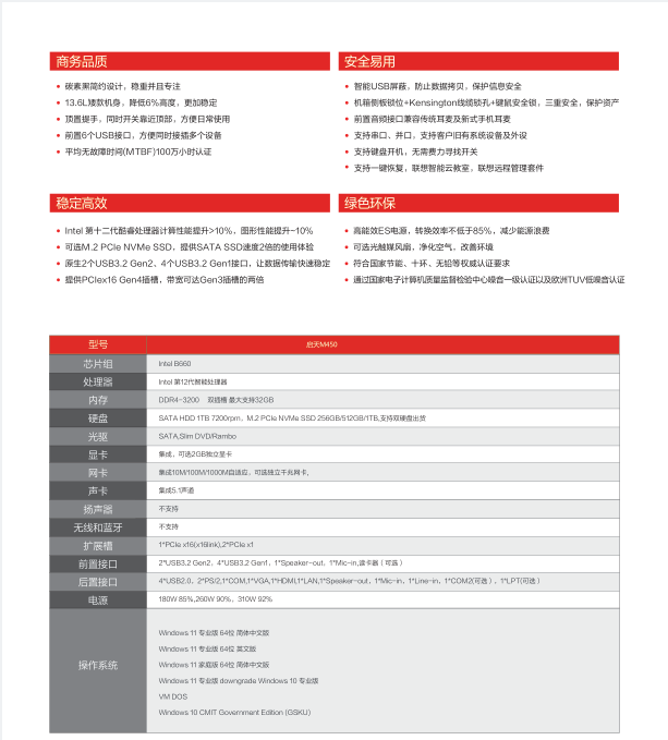 启天M450-A246:i5-12500(3.0G 6核)/16G/1T+256G/DVD/集显/260W电源/USB键鼠/win11/23寸
