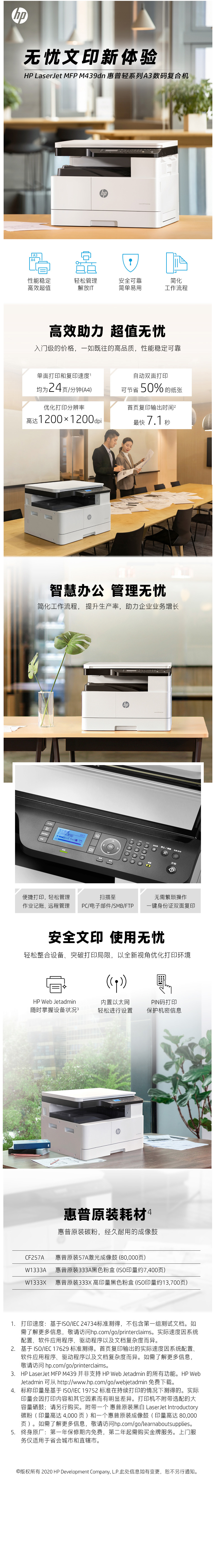 惠普 Laser NS MFP LaserJet M439dn A3黑白激光多功能一体机(打印/复印/扫描)