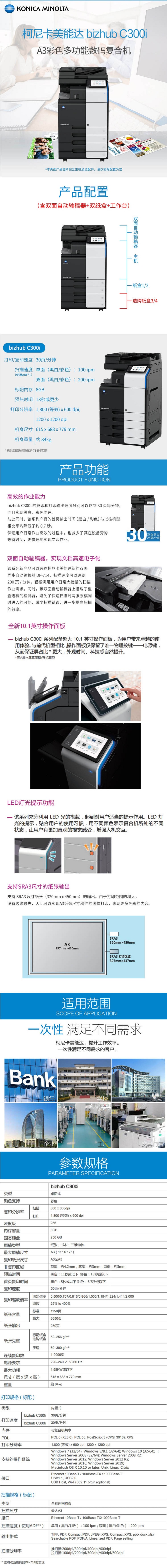 柯尼卡美能达彩色复印机bizhubC300i(主机+盖板配置+双纸盒+内置装订+工作台-1年质保/1年上门服务)