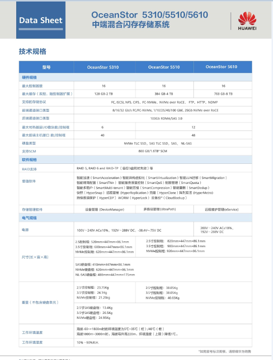 6、软件授权:SAN高级包许可,NAS高级包许可。