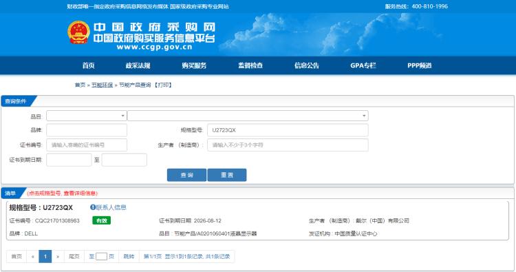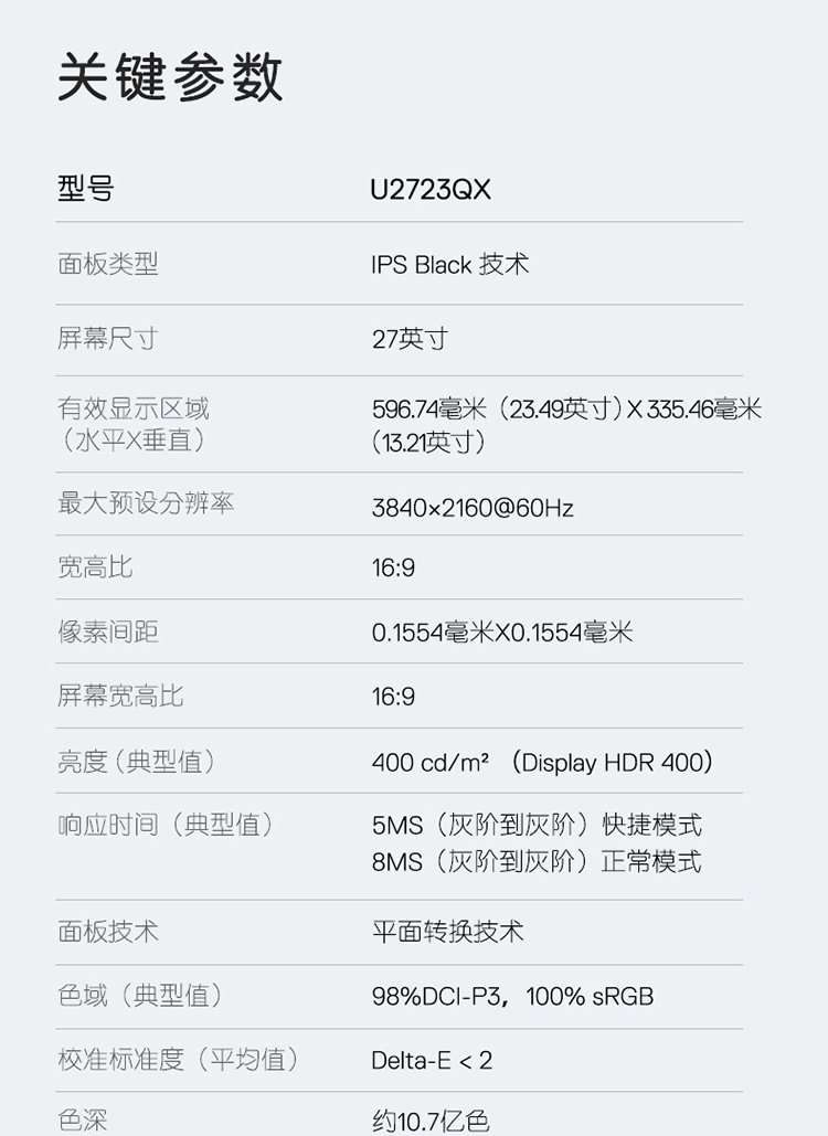 戴尔(DELL)U2723QX 正屏显示器 三年保修服务
