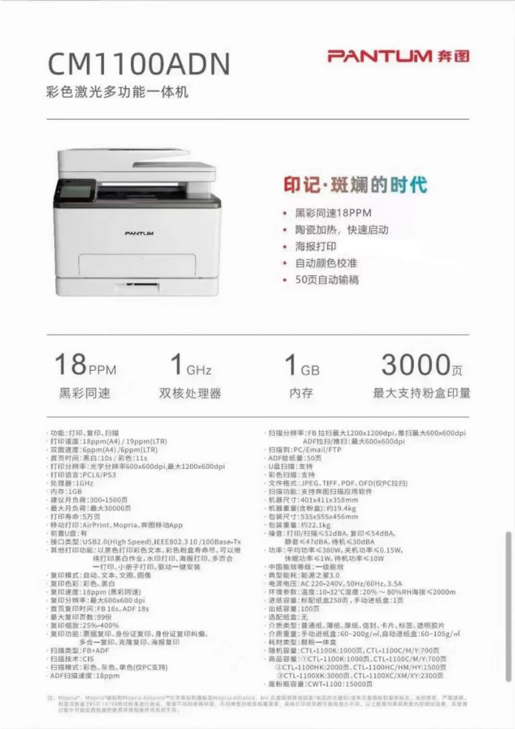 奔图 CM1100ADN 彩色激光多功能一体机