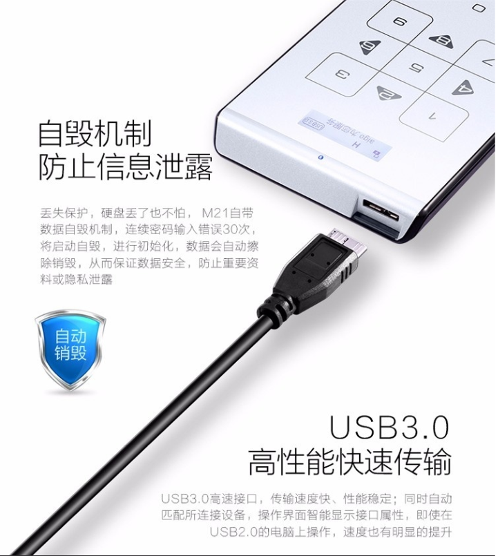 爱国者(aigo)M21 移动硬盘触控式 USB3.0 数字加密