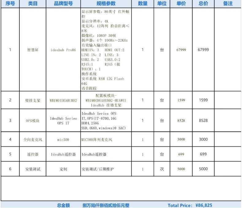 华为IdeaHub Pro 86:智慧屏含(壁挂支架/OPS模块/全向麦克风/遥控器)含安装调试/一年保修