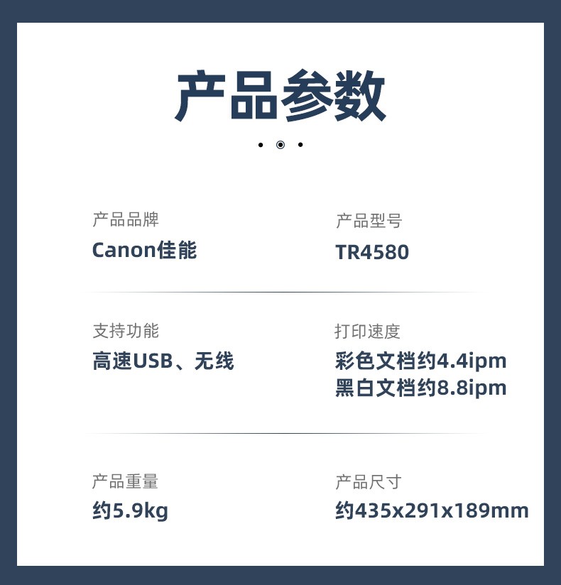 佳能多功一体机(Canon)TR4580自动双面打印 无线彩色喷墨 家用作业照片打印机复印扫描传真一体机