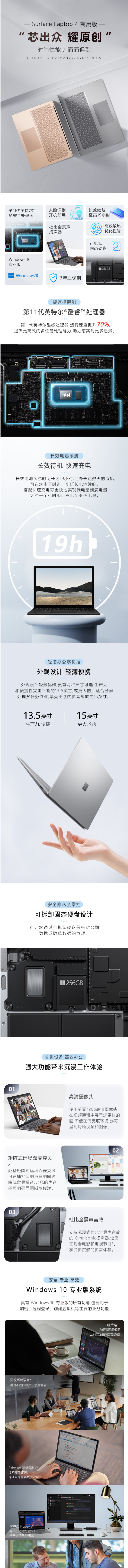 微软(Microsoft)Surface Laptop 4 商用版轻薄笔记本电脑13.5英寸触屏2K高色域长效续航i5 8G 256G 黑色
