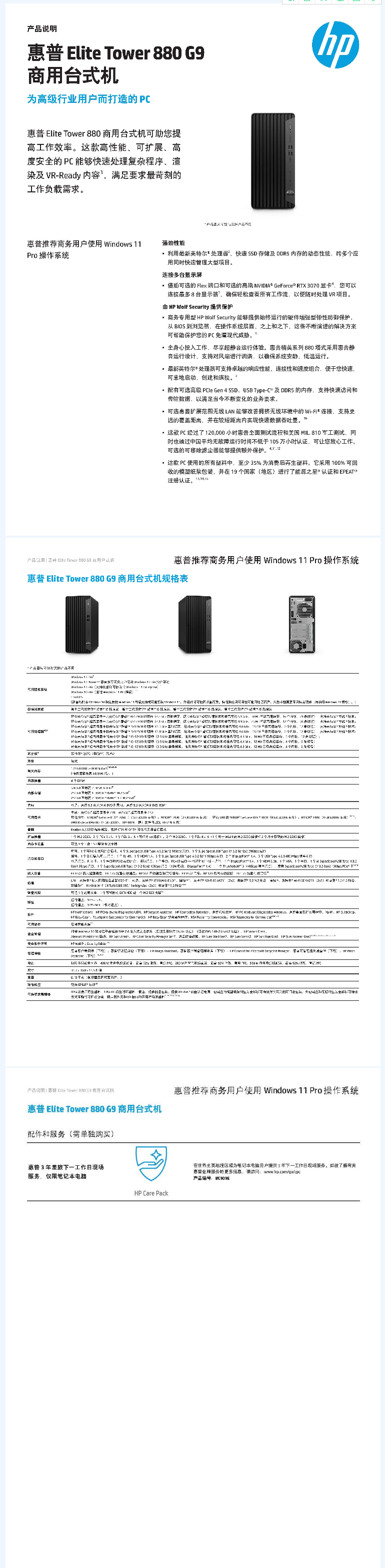 惠普HP Elite Tower 880 G9 高端商用机(I7-12700/16GB/1TB SSD/USB 键鼠/DP HDMI接口/win11/23.8寸16:9 IPS显示器/整机三年保修)