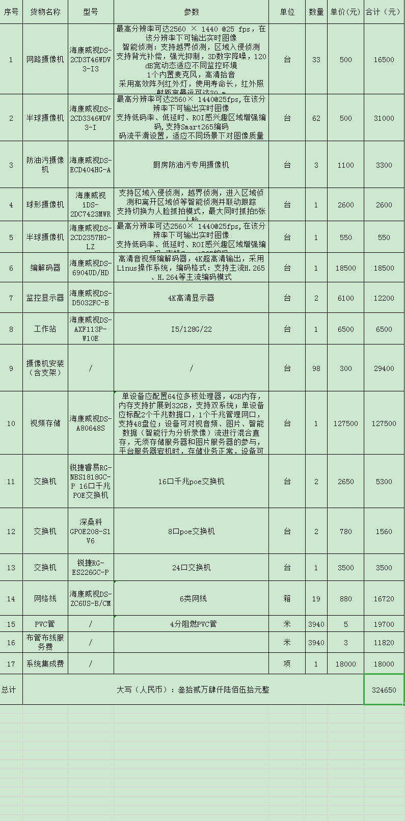 视频监控系统设备 单位:项