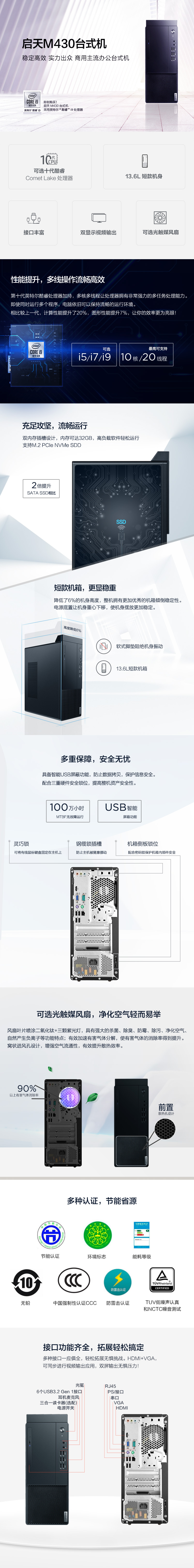 联想启天M430-B465台式电脑 i5-10500 8G+256GB+1T