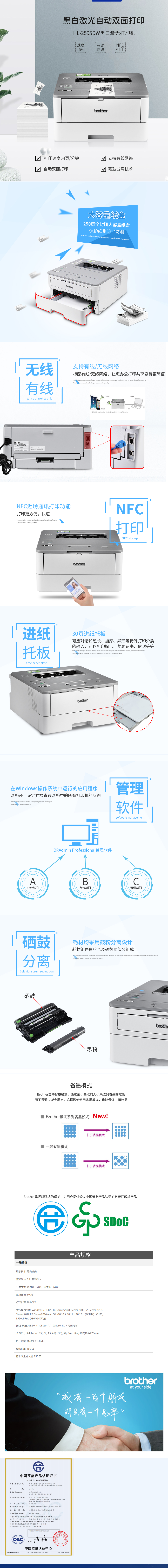 兄弟(brother)HL-2595DW (自动双面无线打印)黑白激光打印机