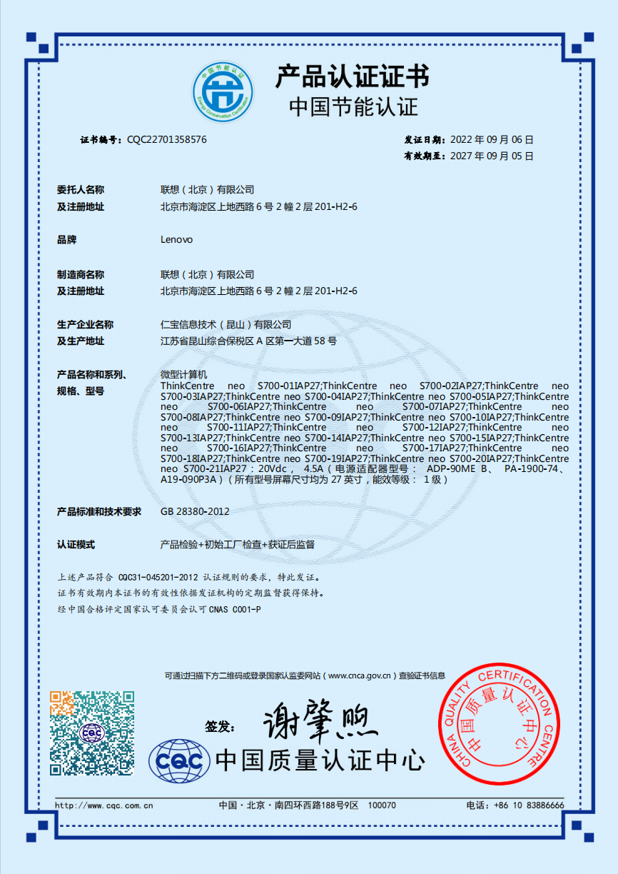 联想ThinkCentre neo S700一体机电脑(i5-12450H/16G/512G SSD/win11home/27寸显示器/三年保修)