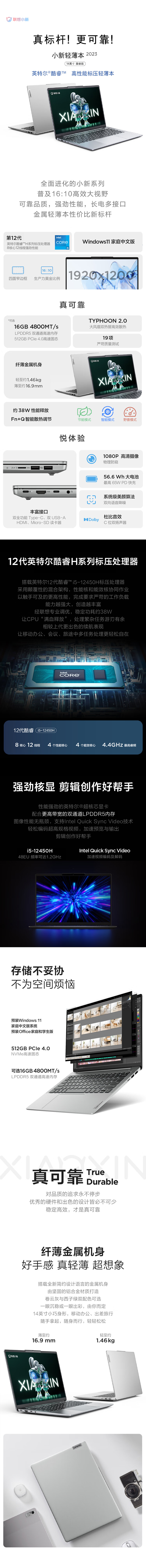 联想笔记本电脑小新14轻薄本 14英寸超薄本(i5-12450H/16G/512G/Win11)灰