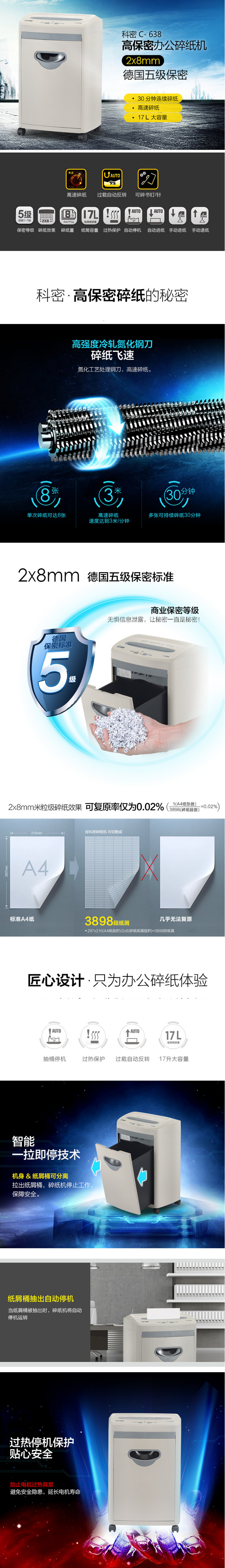 科密碎纸机Z-600(全自动120张 手动8张 持续30分钟 25L 可碎卡、订书针)