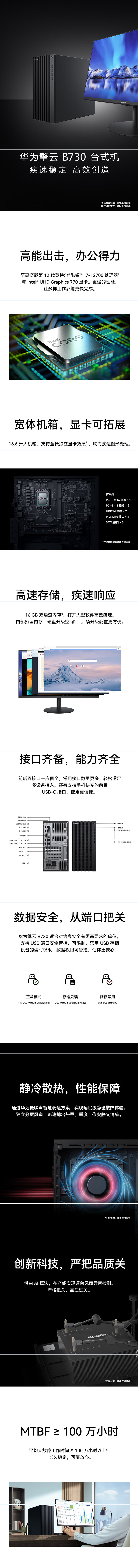 华为擎云 B730 Core i5-12400/128+1T HDD/8GB/无光驱/USBKB/USBMouse/串口/300W/ 16.6升(主机保修3年含3年上门/23.8英寸显示器保修1年)