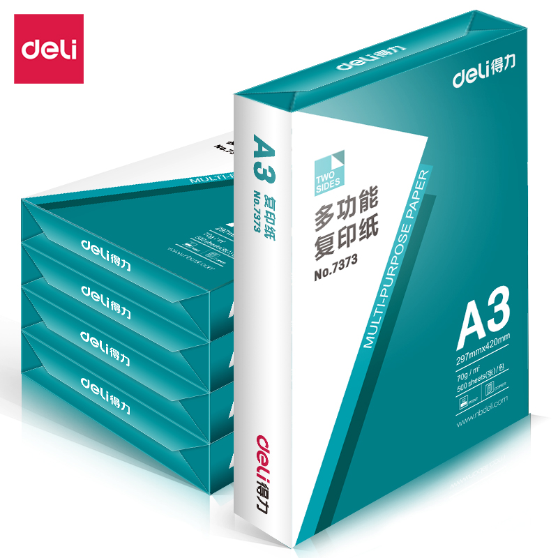 得力7390复印纸 A3 70G 500张/包 5包/箱 单位:箱
