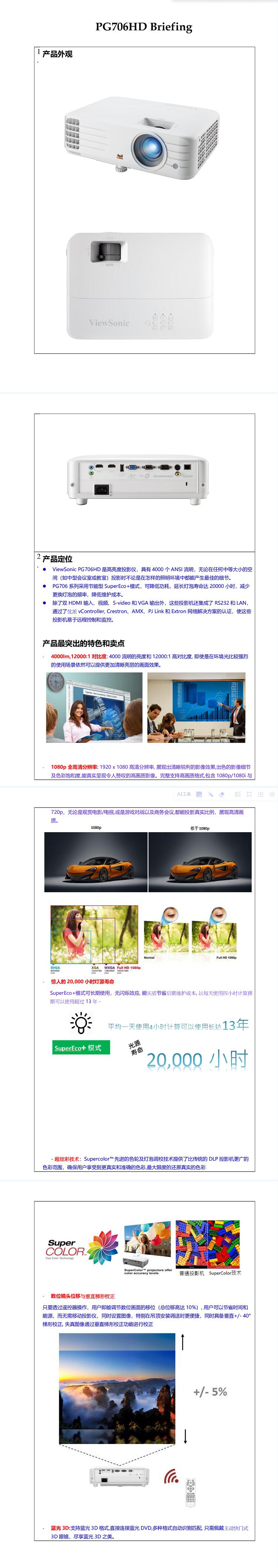 优派 PG706HD 投影仪