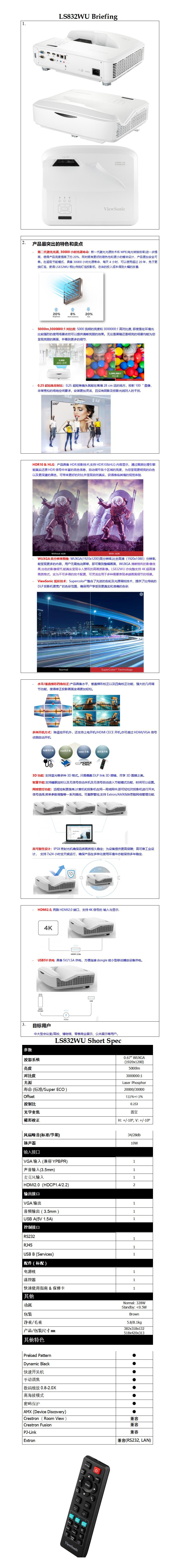 优派 LS832WU 投影仪