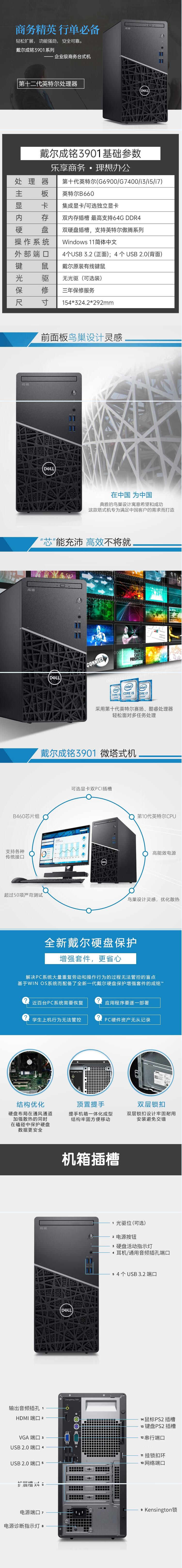 戴尔(Dell)成铭3901台式电脑(I5-12500/8G/1TB+256G SSD/WIN11H/HMDI+VGA/23.8显示器/三年保修服务)