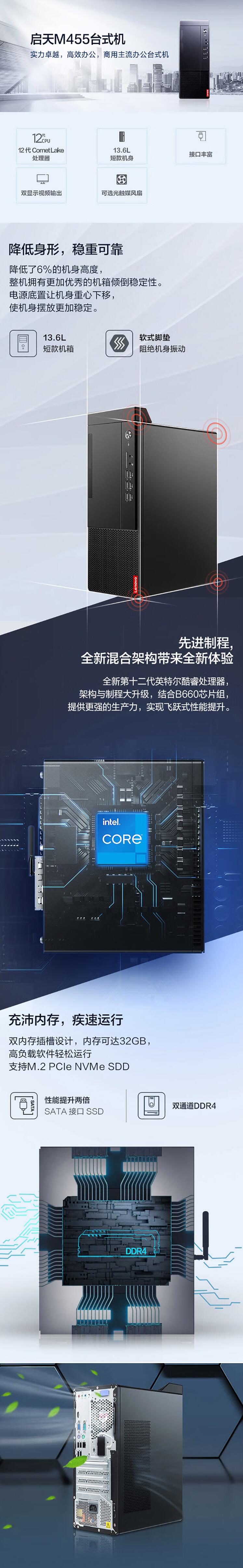 联想(Lenovo)启天M455-A234(I5-12500/16G(8G*2)/512GB+1T/Win11/23.8寸显示器/三年保修)