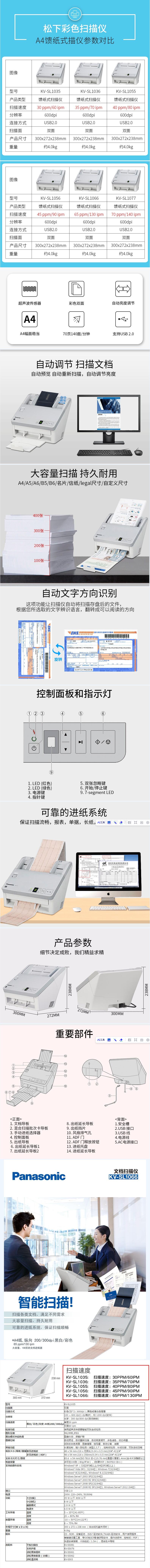 松下(Panasonic)KV-SL1066 A4彩色高速双面扫描仪