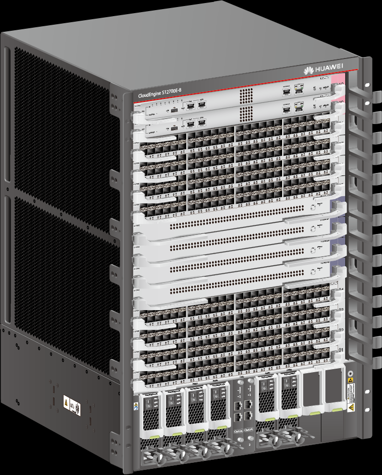 华为S12700E-8交换机(总装机箱含双主控处理单元+双交换网单元+双电源(3000W)+二块48端口万兆以太网光接口板(X6S SFP+)+1块48端口百兆/千兆以太网电接口板(X6S RJ45)+2根堆叠线缆(高速SFP+-10G-CU5M)+1个伸缩滑道) 、按需配置模块、三年保修、含安装调试