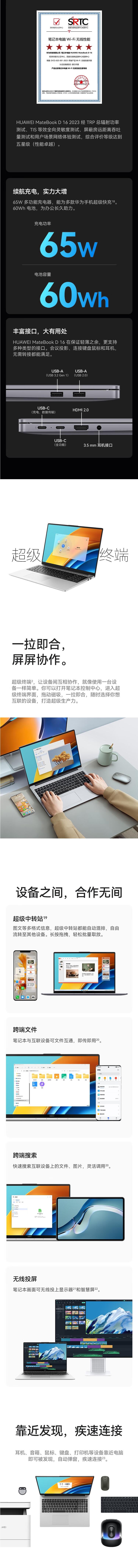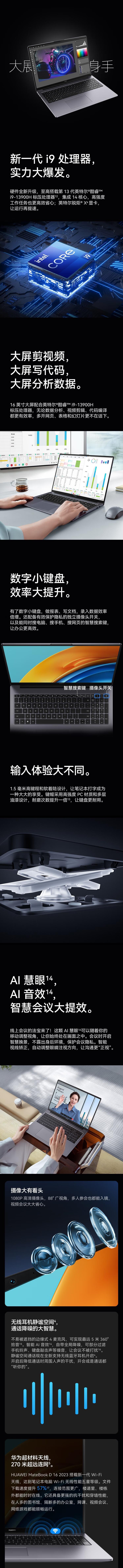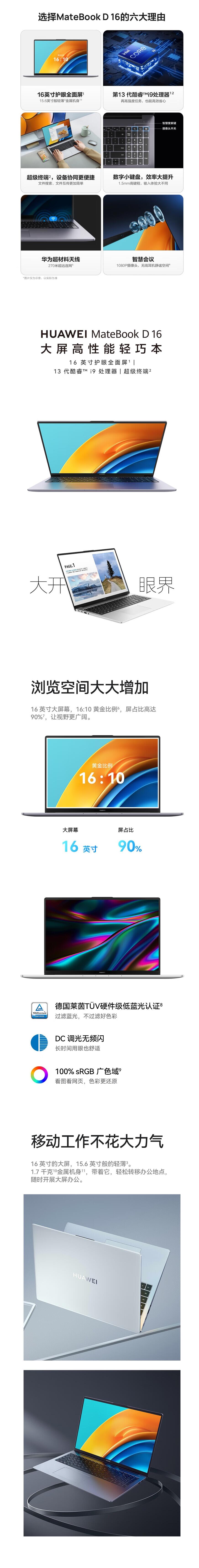华为MateBook D 16 笔记本电脑 13代酷睿版/16英寸/i9/16G/1T 深空灰