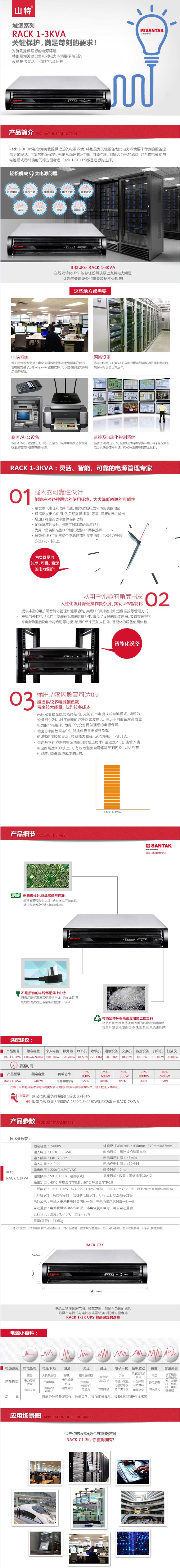 山特(SANTAK)ups不间断电源机架式C3KR内置电池服务器机房电脑稳压3000VA/2400W(主机3年原厂保修,内置电池2年原厂保修)