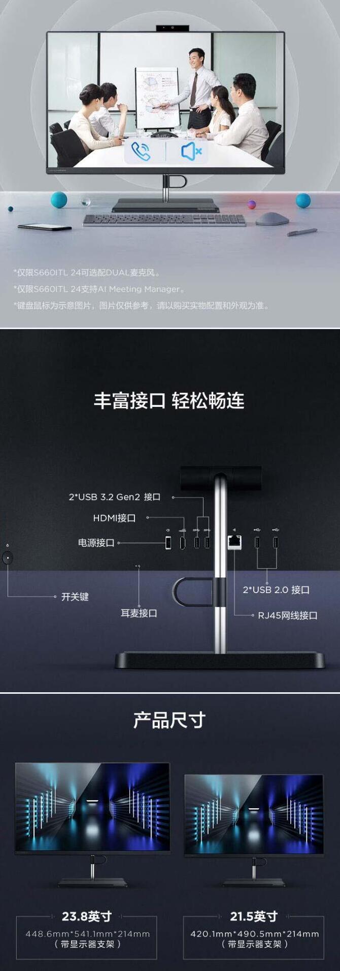 联想扬天台式一体机 S660-27IAP24 (15-12450H/16G/512G/集显/23.8寸显示)
