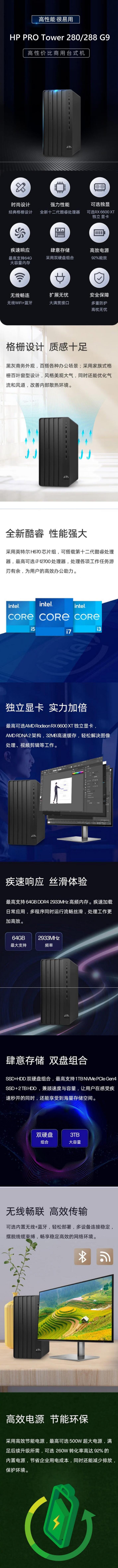 HP Pro Tower 288 G9 PCI Desktop PC 台式电脑( i7-12700 /8G/256GB SSD固态硬盘+1TB/超薄DVD/Win11 H/23.8 英寸显示器/3年保修)