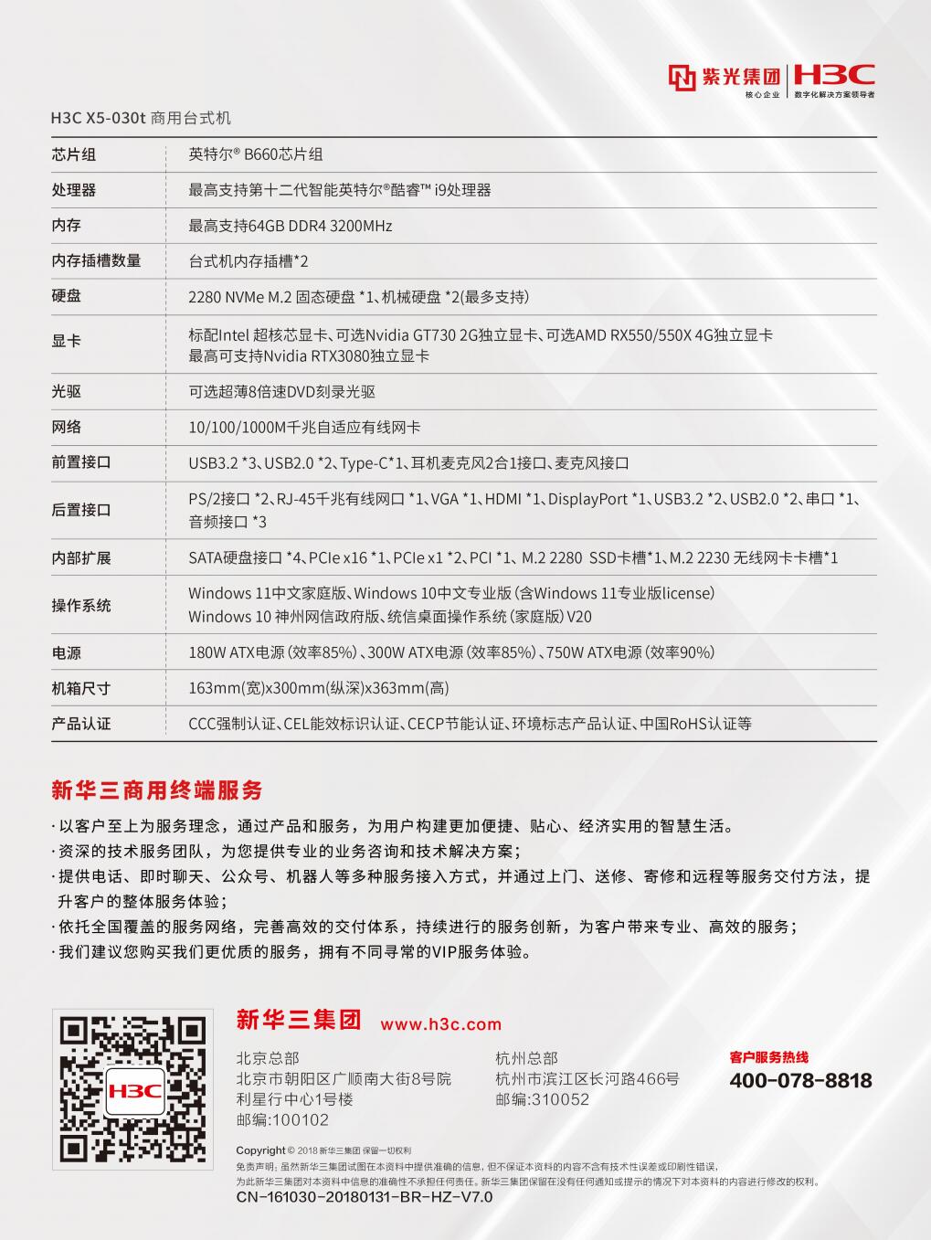 H3C X5-030T台式机(I5-12500 +内存 8G DDR4 +512GB M.2 NVMe固态硬盘 +1TB 3.5英寸7200转机械硬盘+300W+Windows 11 中文家庭版+五年服务+17L+23.8寸显示器)