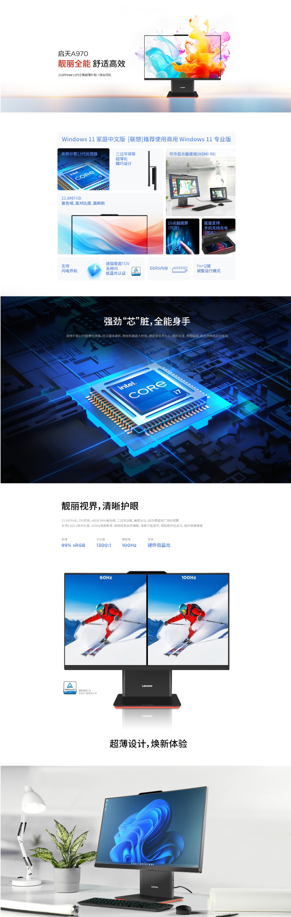 联想启天A970-A014(I5-13420H/16G/512GSS/无光驱/集成/WIFI/摄像头/23.8寸/WIN11-HOME)
