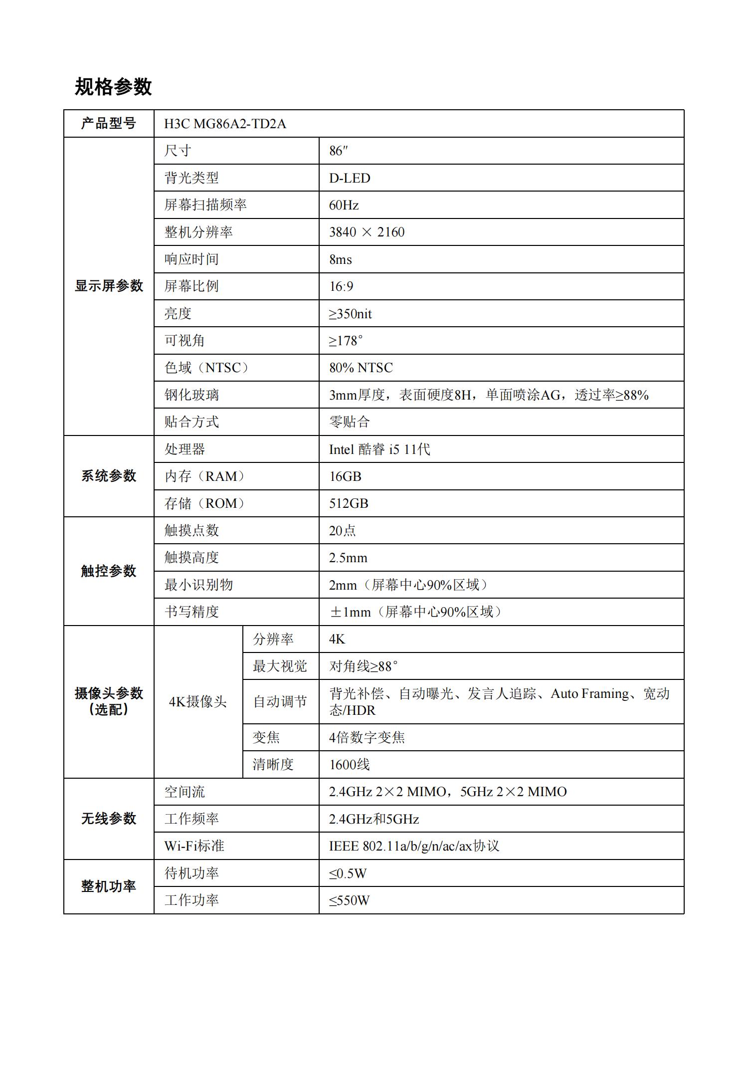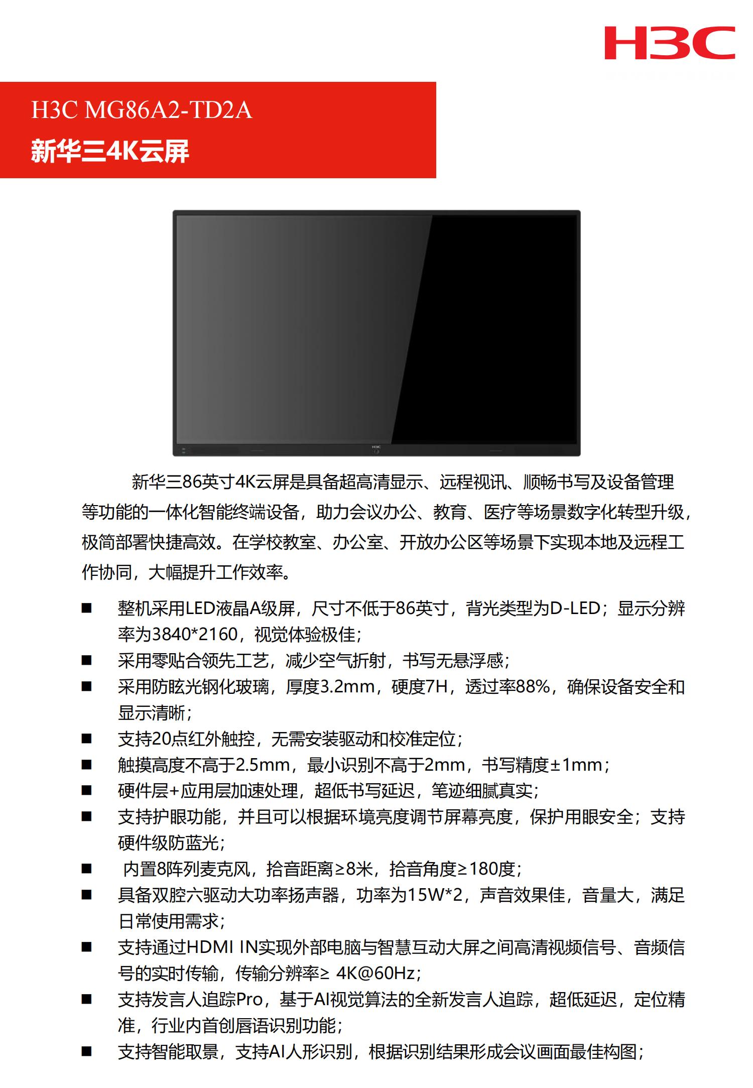 新华三/H3C MG86A2 86英寸云屏 4K会议平板办公触控一体机 含无线传屏器/双系统/I5-OPS模块/触控笔 原厂5年质保