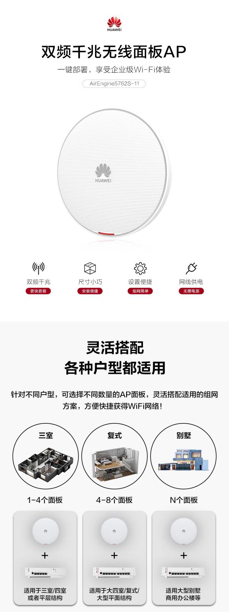 华为 AirEngine5762S-11 吸顶AP面板3000M无线AP千兆路由器