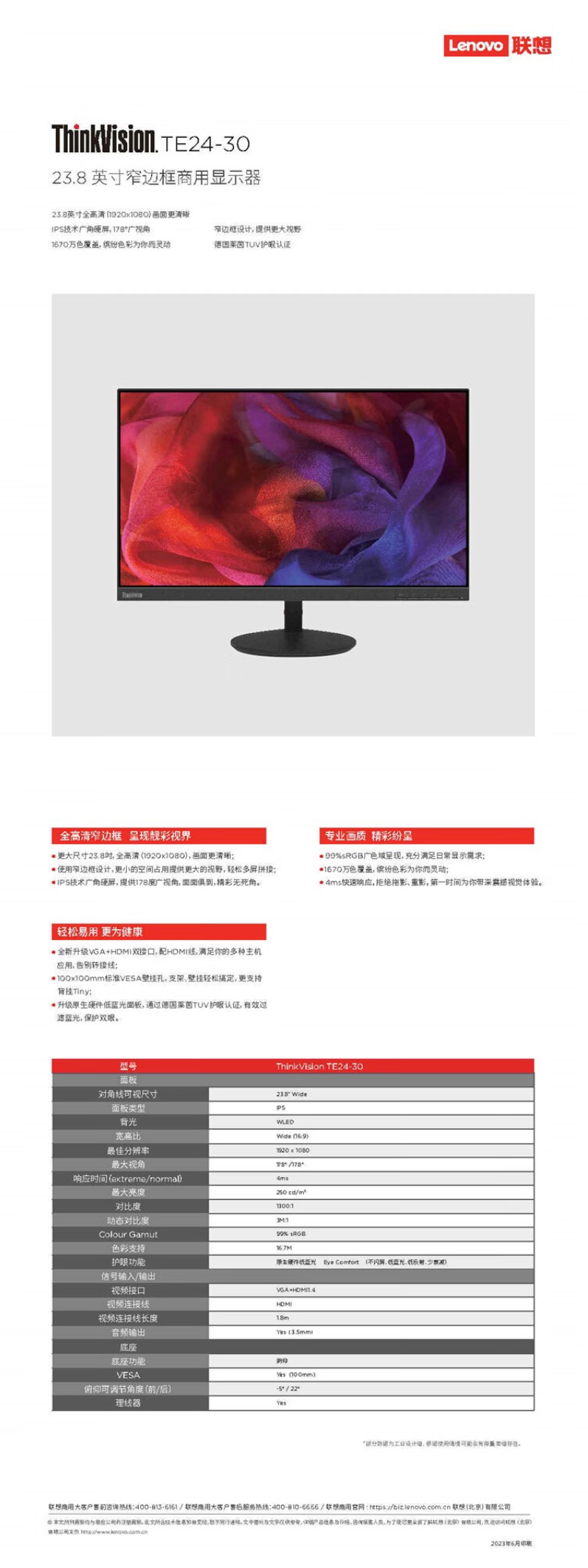 联想 E24-30 23.8英寸FHD高清电脑显示器